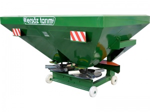 - The centrifugal fertilizer spreading machine is connected to the tractor by the three-point suspension system.